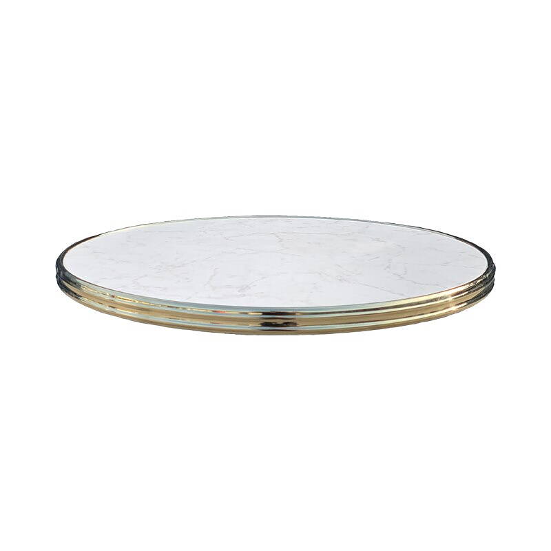 Slitstarkt och reptåligt kompositmaterial. UV-resistent och anpassad för offentlig miljö. Tänk dock på att välja ljusare dekorer om borden skall placeras i direkt solsken, annars finns risk att bordsskivan kan slå sig pga värmeväxlingar. Ljusa dekorer är även mindre repkänsliga än mörka. Mörka bordsskivor ska inte placeras i direkt solsken.