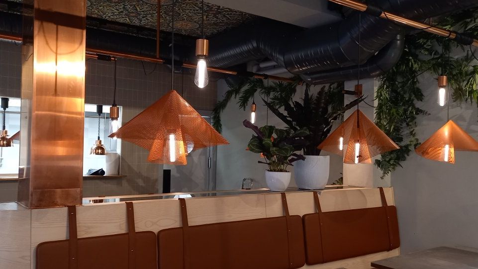 Nya stolar och kompletterande växter och belysning till restaurang i Norrköping city.