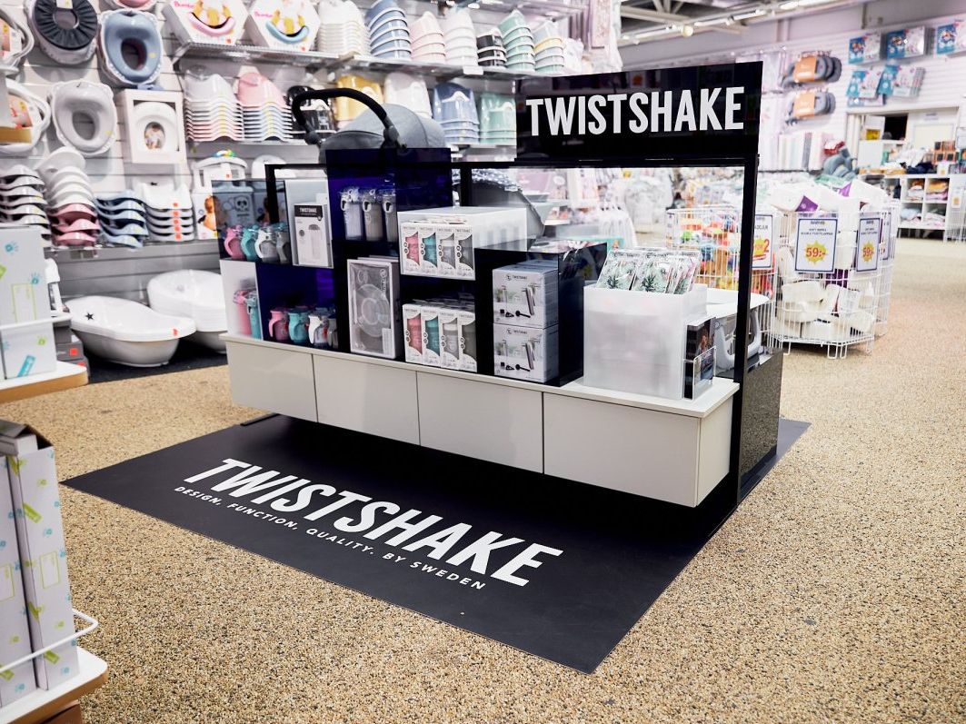 Exponeringsyta för Twistshake i Babyabutiken Linköping Tornby